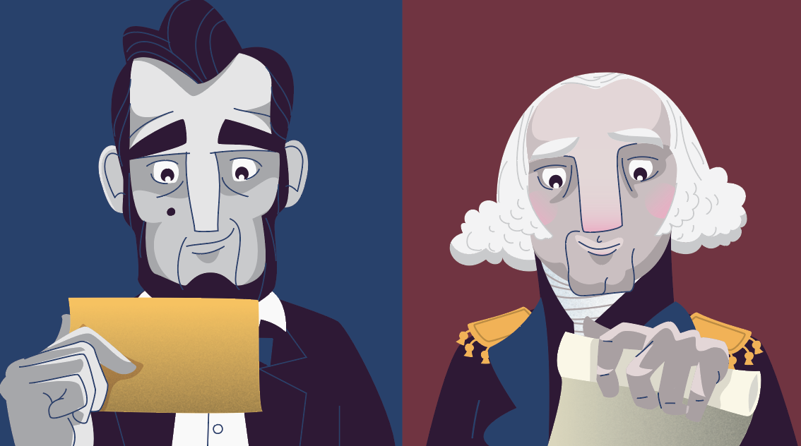 I honestly thought they were joking when the folks at Author’s Projects asked if I’d be interested in illustrating George Washington and Abraham Lincoln for a series of short TV ads for Presidents Day. Turns out, they were completely serious.